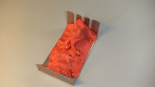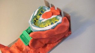 Abdruckträger mit einem Block vorgewärmten Wachsknet “Silifix W” | Abformung wird aufgelegt | unter K`volution Modellrahmen ausgerichtet |