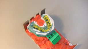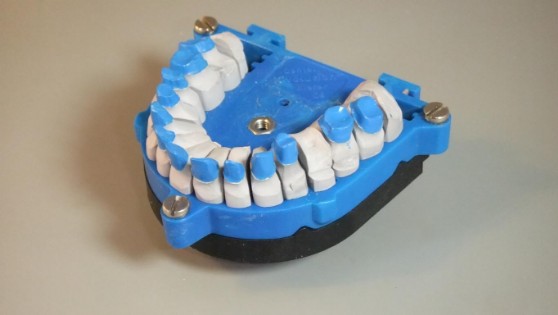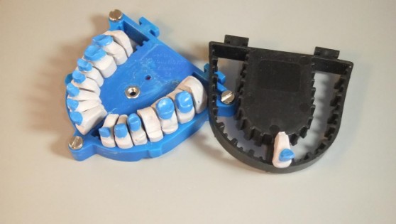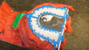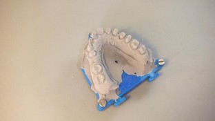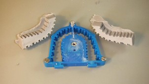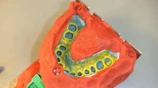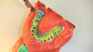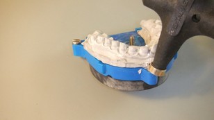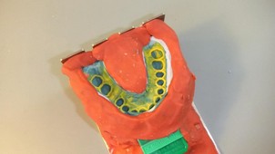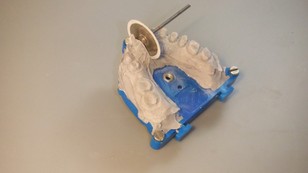 K`volution aufgelegt, damit sich der Rahmen im Silifix abzeichnen kann - | - dieser wird mit Wachsmesser zurückgenommen, damit der Gips auch auf den Rahmen fließen kann und somit später die Endposition der Segmente darstellt. | Abformung wie gewohnt ausgießen |