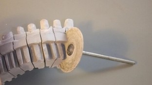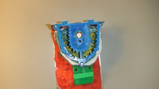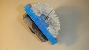 leichte Schläge mit dem “Kiefer Hammer” u.a. auf die 3 externen Schrauben | ................................ fertig | die einzelnen Segmente werden mit Kiefer Spezial Diamantscheibe 26 mm und Handstück gesägt |