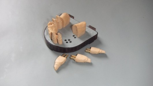 Die Pinpositionen des Kiefer Splitsytems sind allerdings auf der Rückseite geschlossen, zum Herausheben der Segmente muss dann von Basal gehebelt werden, dazu kann man z.B. kleine Hohlräume unter die Segmente schleifen.